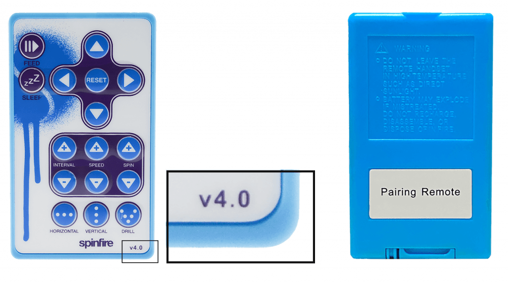 By default, each remote is capable of controlling multiple Spinfire ball machines, and each machine can receive commands from multiple remotes. This means no pairing is required when using the original remote that came with your machine.