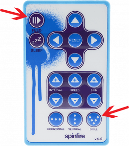 Step 1: With the ball machine turned off, please press the “feed” and “drill” button on the remote control simultaneously for 3 seconds (on cricket machines, press the “feed” and “pair” buttons). The remote light will begin to flash slowly, indicating that it is ready for pairing.