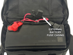 A replacement 32V 15A blue mini blade fuse can be found in the pocket inside your external battery bag (on the inside of the top flap) or they can be purchased at your local hardware store.