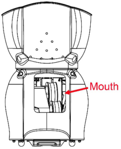 MOVING PARTS INSIDE! | · Do not insert body parts or foreign objects into the mouth of the machine. In the event of a ball jam, the operator should not put their hand or any foreign object into the machine whilst it is turned on. Injury could occur if hands or clothing are caught in the mechanisms. Always turn the machine off in the event of a jam or machine failure.