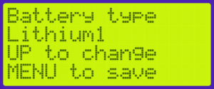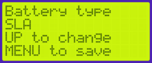 In software versions MAIN 5.1.7 and later, we have added the ability to allow you to select between 4 different battery types. Sealed Lead Acid (SLA), Lithium 1, Lithium 2 and Custom.