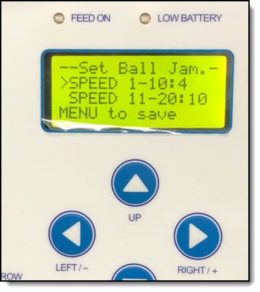 - If you have software version 3.0.0 through to 3.6.6 (not available in later versions), you can try adjusting the sensitivity of the motors down to 10 to see if this corrects the problem. Occasionally, a machine may display an error relating to a throwing wheel such as “Top motor error, check for a ball jam.” However, there is no ball jam. This can be caused by over sensitive software, trying to detect a ball jam but instead giving a false error message. To assist with this problem, a feature was temporarily added to the software to reduce the sensitivity of this throwing wheel motor jam detection. You can turn on the machine by pressing “power + left + right” to access this function. By default, the sensitivity is set to 1 which is the highest. To decrease the sensitivity, simply increase the number to 2 – 10 depending on what is required to prevent the error message from displaying falsely. Please note, this sensitivity adjustment was experimental and has since been removed, but it may still work if you have the correct software versions (in newer software versions, a similar menu now exists which says SENSITIVITY, but it’s unrelated to this issue and won’t help you). The sensitivity can be adjusted for low speeds 1-10 or high speeds 11-20. We recommend to start by increasing both to the same number. To increase the value, used the RIGHT / + button and to decrease it, use the LEFT / – button.