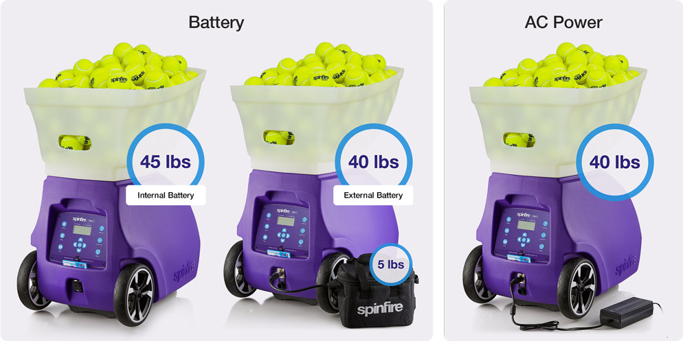 For those who would prefer an all-in-one machine, roll it on and off court with no external extras and plug in your machine to charge the battery.