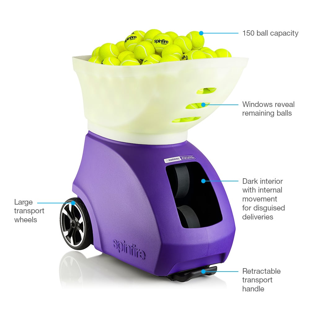 Using counter rotating wheels with enhanced traction for consistent ball launching, the Spinfire Pro 2 operates very quietly and can generate maximum topspin and slice if desired.